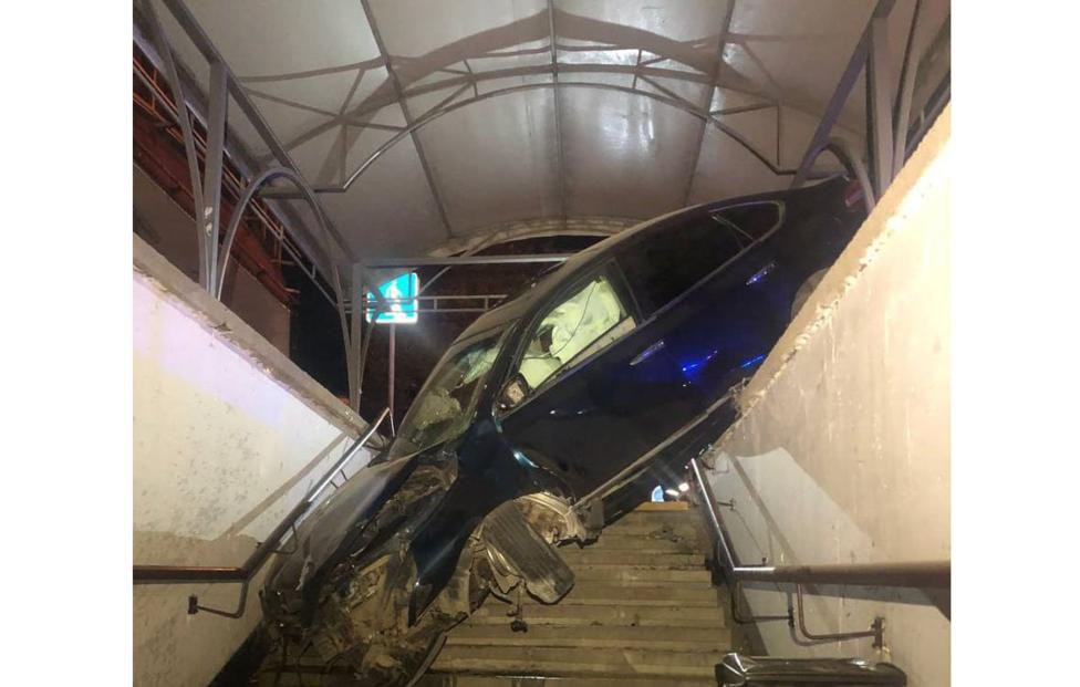 Автомобиль съехал с дороги и отправился прямиком в подземный пешеходный переход. К счастью, все живы.